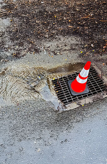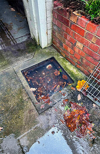 Rapid unblocking of stormwater pits and grated inlets clogged with leaves, dirt, or debris during storms to prevent backflow and property flooding.